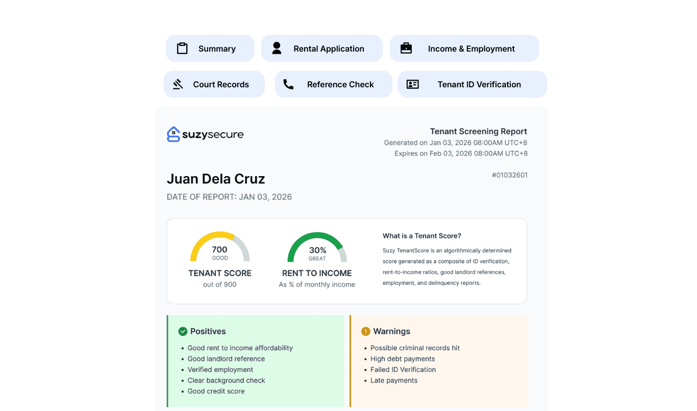 with Suzy Secure, you get a comprehensive evaluation of potential tenants
