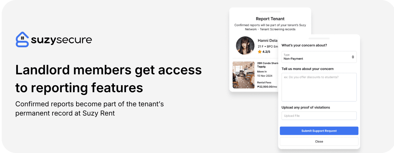 With Suzy Secure, tenants consent to data input from high-quality sources. We contact previous landlords, verify income documents, and algorithmically rate tenant profiles with professional analytics.